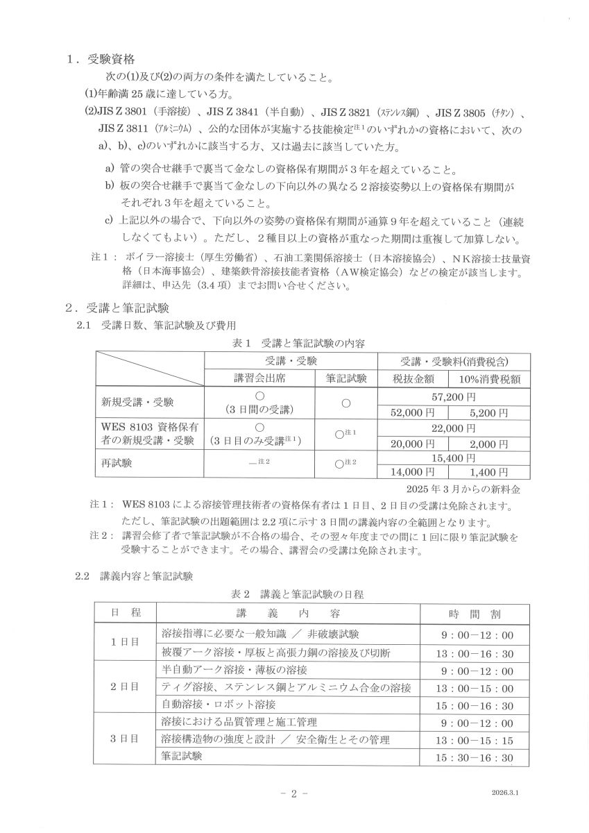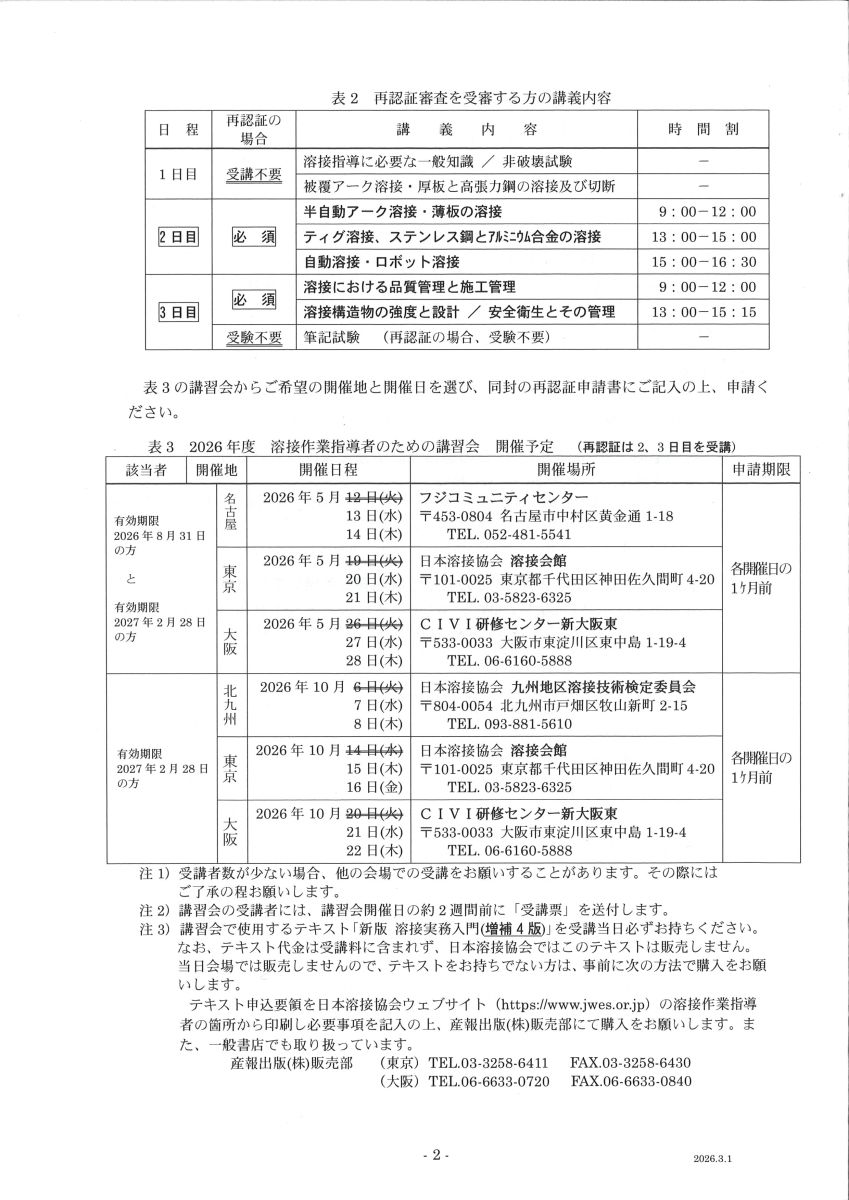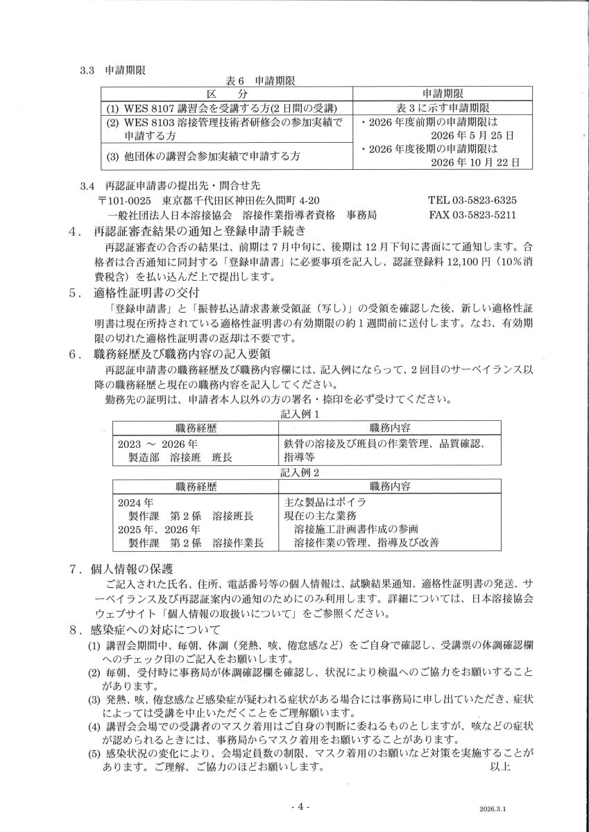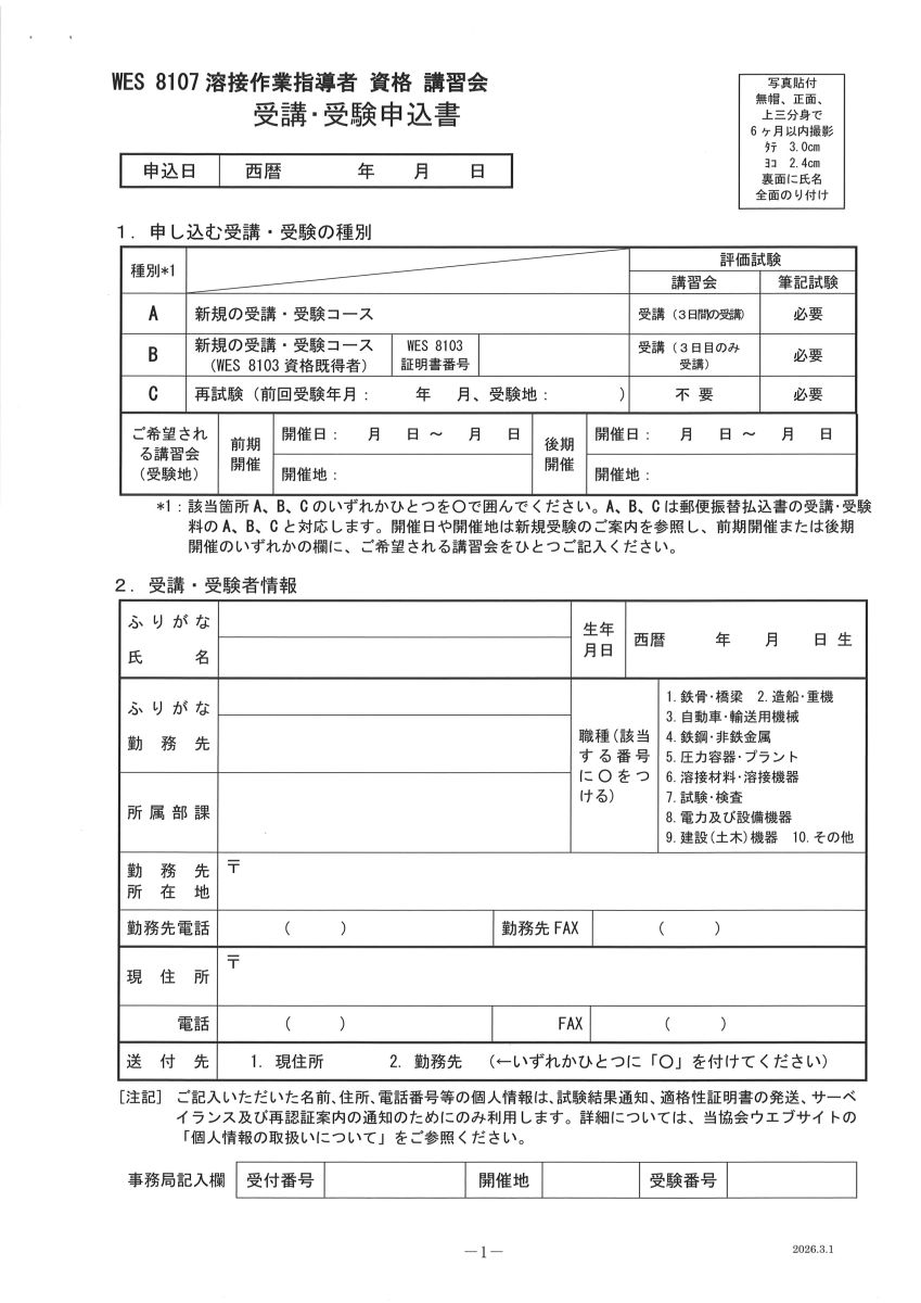 溶接作業指導者資格について、新規受験・再認証につきましては、e-Weld ウエブ申し込みには対応しておりません。