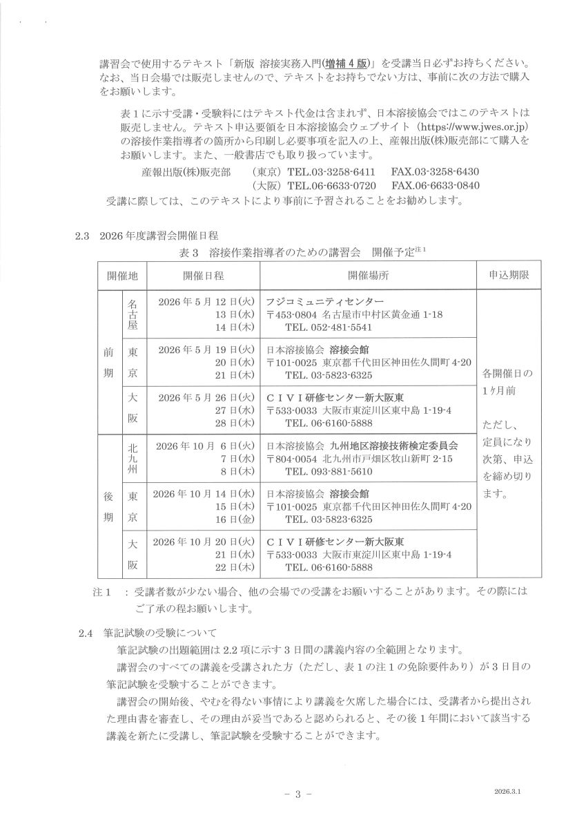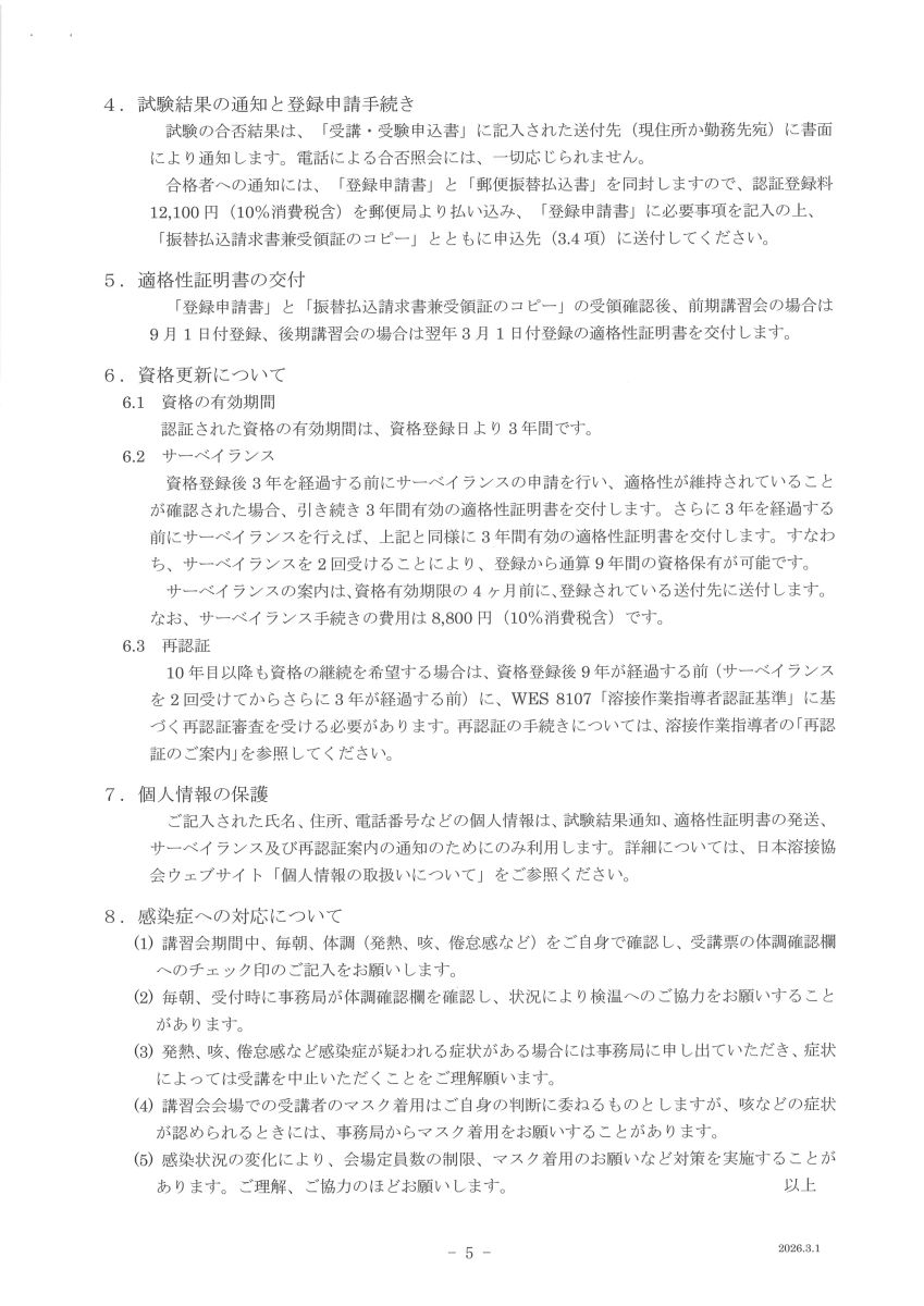 手続・案内は「日本溶接協会ウエブサイト」 溶接作業指導者 - JWES:日溶協ポータルサイトに掲載しています。